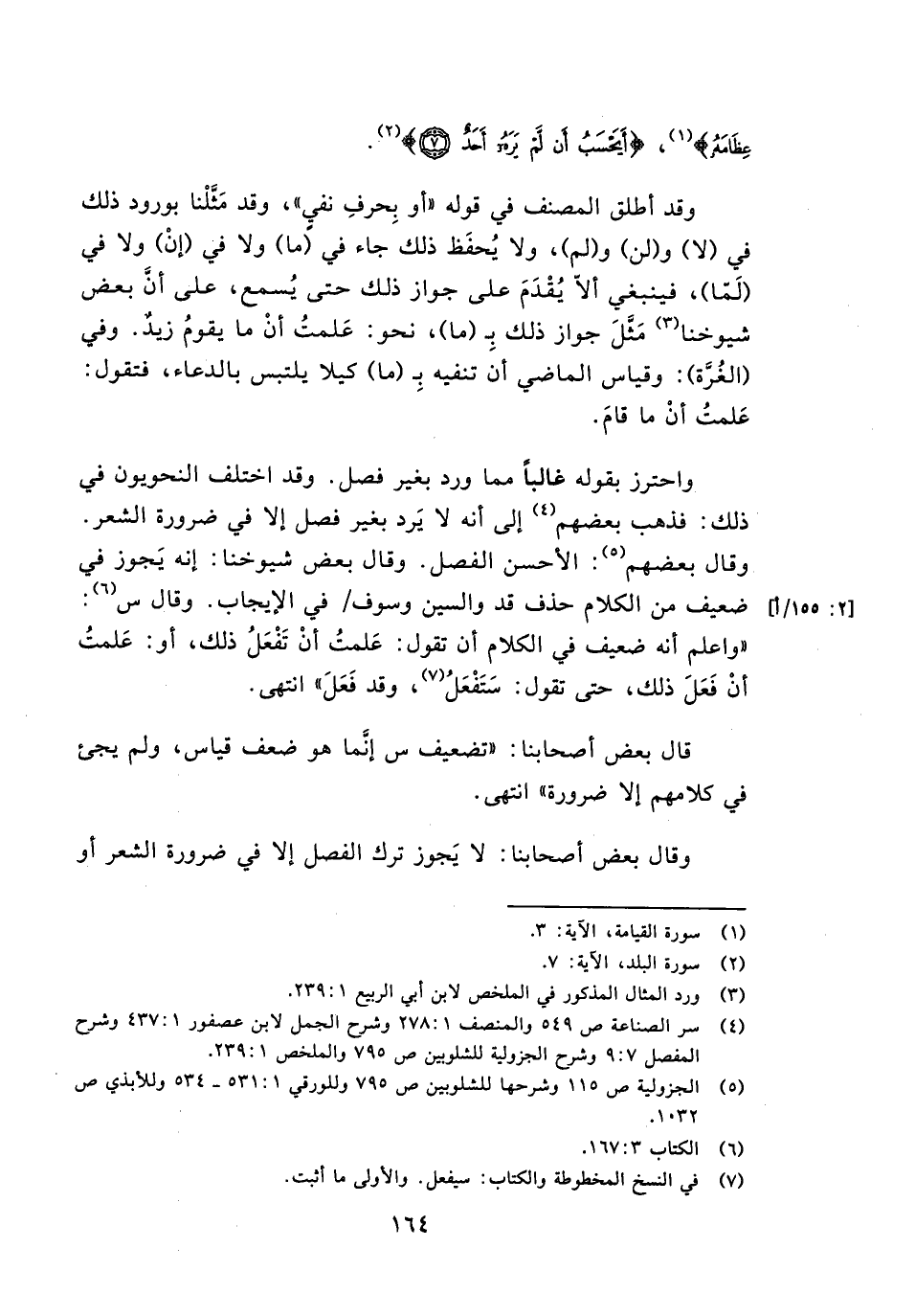 وقال بعض أصحابنا: لا يجوز ترك الفصل إلا في ضرورة الشعر أو