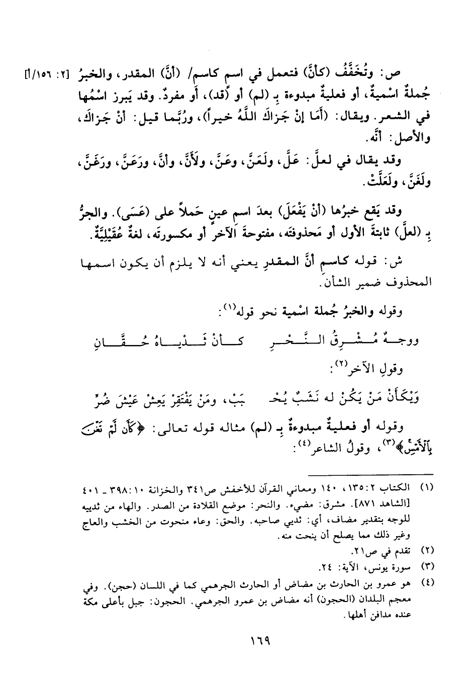 ش: قوله كاسم أن المقدر يعني أنه لا يلزم أن يكون اسمها المحذوف ضمير الشأن.