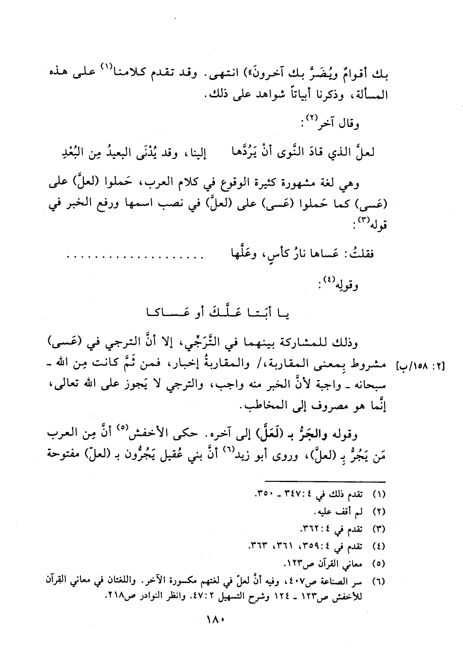 وهي لغة مشهورة كثيرة الوقوع في كلام العرب, حملوا (لعل) على (عسى) كما حملوا (عسى) على (لعل) في نصب اسمها ورفع الخبر في قوله: