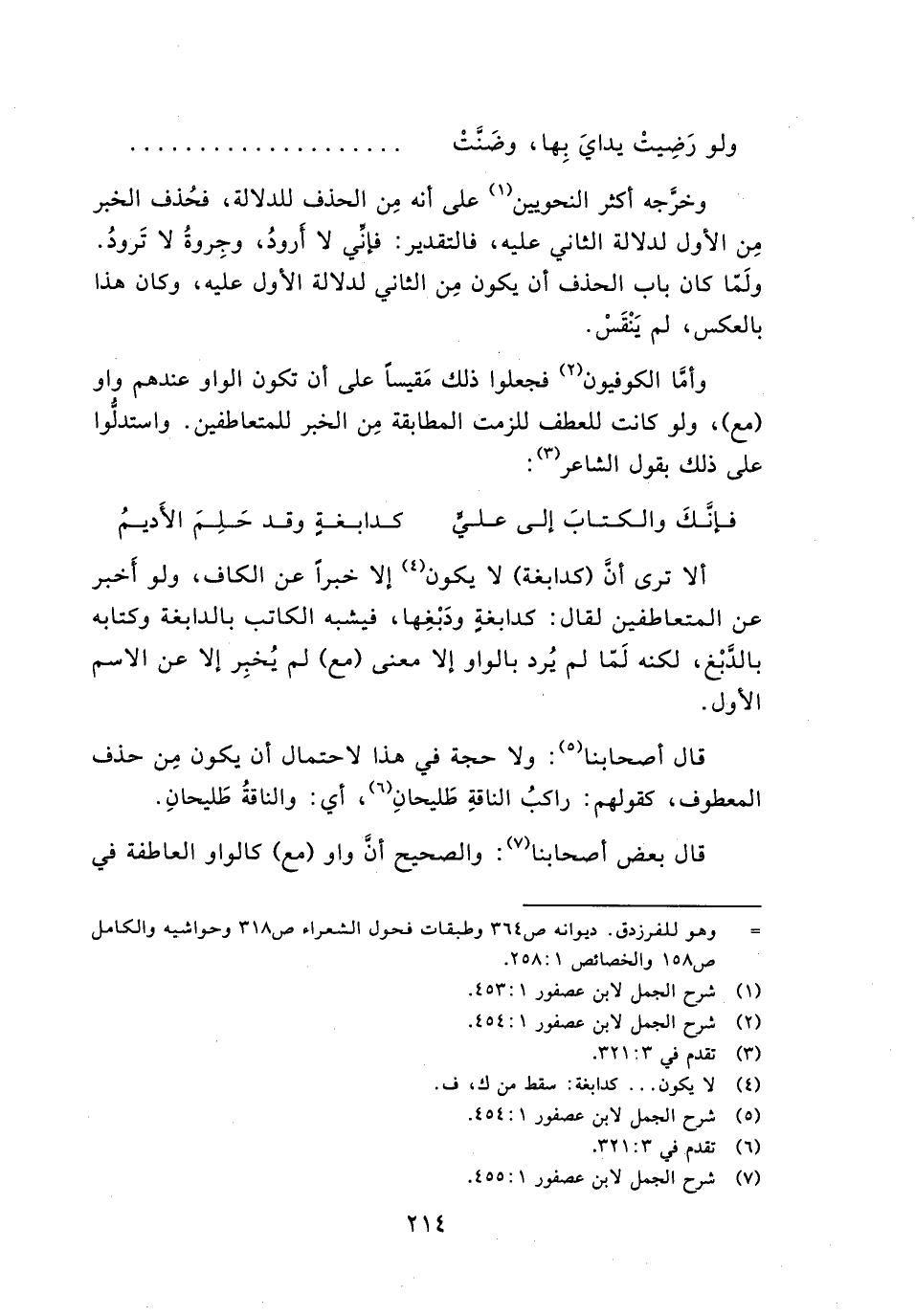 قال أصحابنا: ولا حجة في هذا لاحتمال أن يكون من حذف المعطوف، كقولهم: راكب الناقة طليحان، أي: والناقة طليحان.