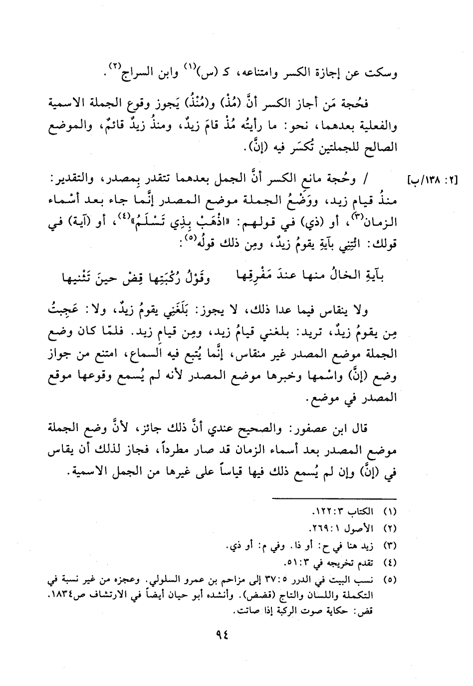 وسكت عن إجازة الكسر وامتناعه كـ (س) وابن السراج.