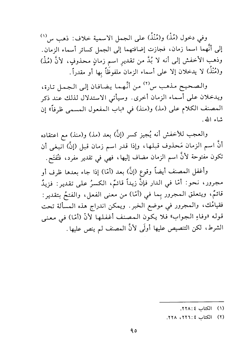 والعجب للأخفش أنه يجبز كشر (إن) بعد (مذ) و (منذ) مع اعتقاده أن اسم الزمان محذوف قبلها, وإذا قدر اسم زمان قبل (إن) انبغى أن تكون مفتوحة لأن اسم الزمان مضاف إليها, فهي في تقدير مفرد, فتفتح.