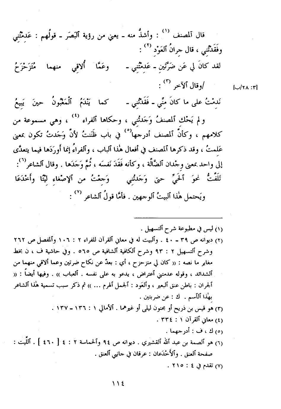 قال المصنف: وأشذ منه- يعني رؤية البصر- قولهم: عدمتني وفقدتني، قال جران العود: