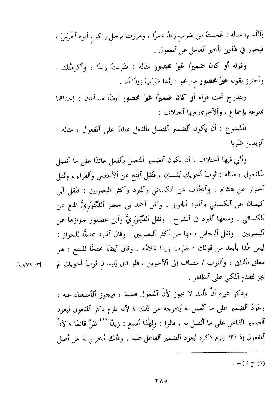وقوله أو كان ضميرًا غير محصور مثاله: ضربت زيدًا، وأكرمتك. واحترز بقوله غير محصور من نحو: إنما ضرب زيدًا أنا.
