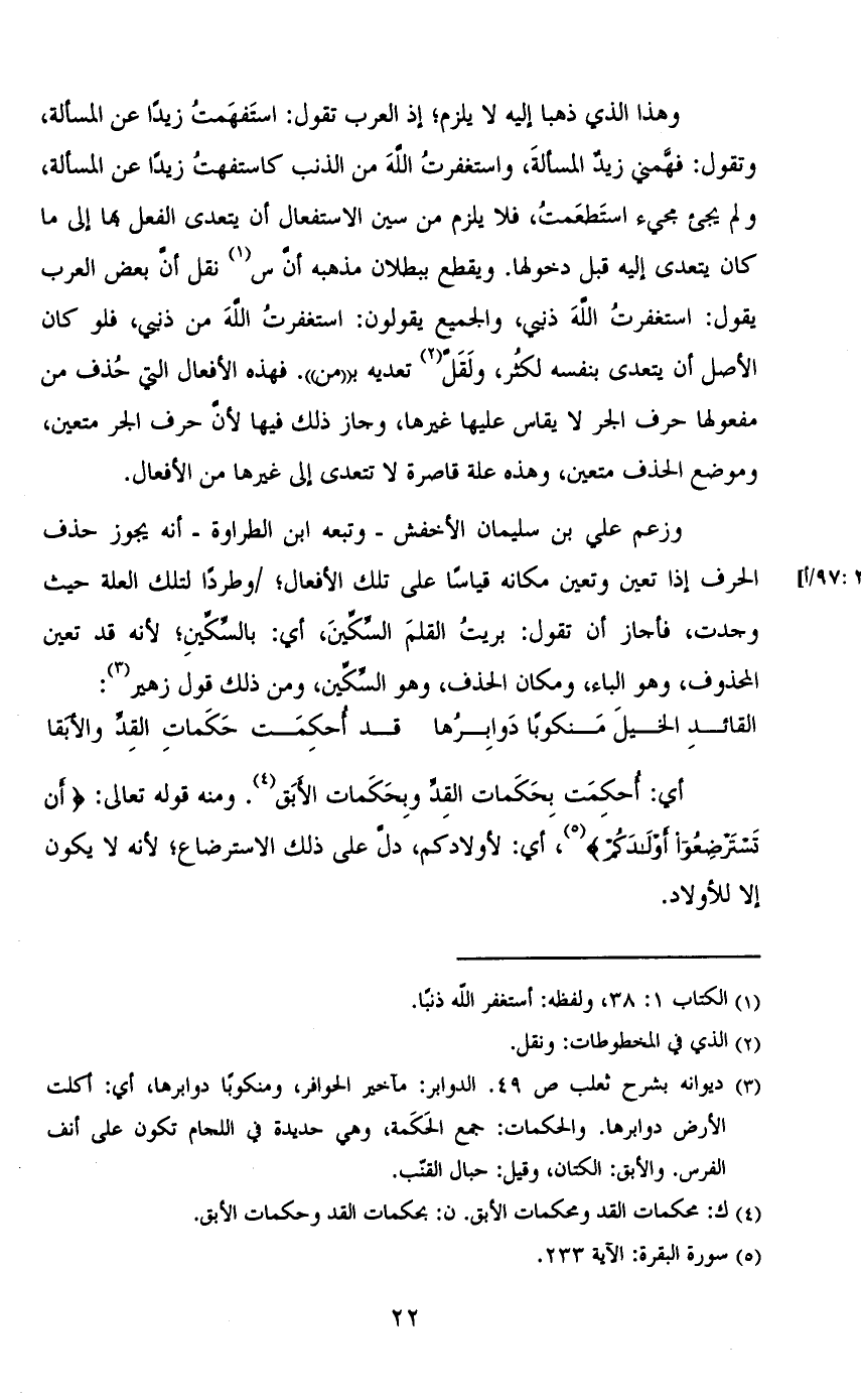 وهذا الذي ذهبا إليه لا يلزم؛ إذ العرب تقول: استفهمت زيداً عن المسألة، وتقول: فهمني زيد المسألة، واستغفرت الله من الذنب كاستفهمت زيداً عن المسألة، ولم يجيء مجيء استعطمت، فلا يلزم من سين الاستفعال أن يتعدى الفعل بها إلى ما كان يتعدى إليه قبل دخولها. ويقطع ببطلان مذهبه أنّ س نقل أنّ بعض العرب يقول: استغفرت الله ذنبي، والجميع يقولون: استغفرت الله من ذنبي، فلو كان الأصل أن يتعدى بنفسه لكثر، ولقل تعديه بـ ((من)). فهذه الأفعال التي حُذف من مفعولها حرف الجر لا يقاس عليها غيرها، وجاز ذلك فيها لأن حرف الجر متعين، وموضع الحذف متعين، وهذه علة قاصرة لا تتعدى إلى غيرها من الأفعال.