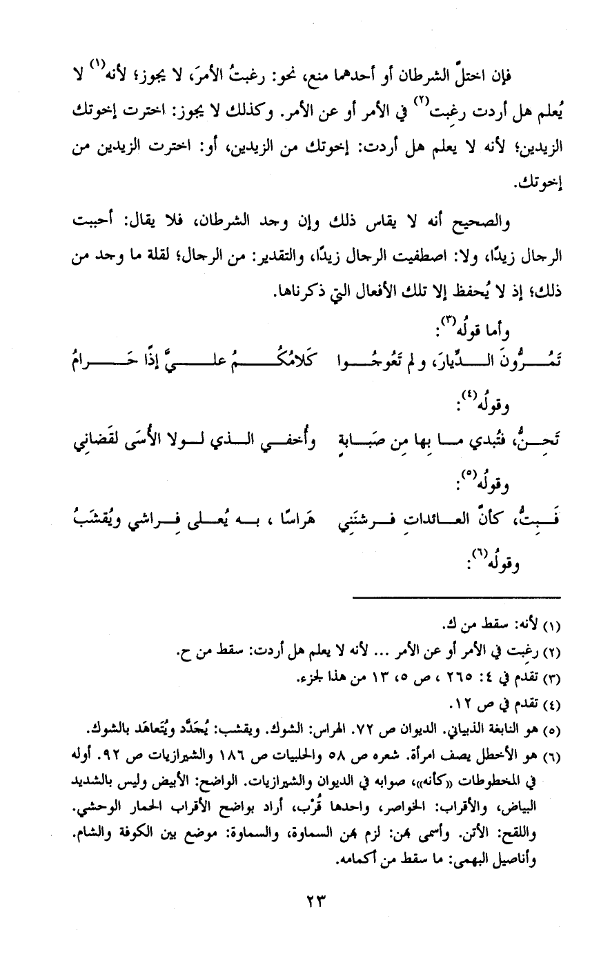 فإن اختل الشرطان أو أحدهما منع، نحو: رغبت الأمر، لا يجوز؛ لأنه لا يعلم هل أردت رغبت في الأمر أو عن الأمر. وكذلك لا يجوز: اخترت إخوتك الزيدين؛ لأنه لا يعلم على أردت: إخوتك من الزيدين، أو: اخترت الزيدين من إخوتك.