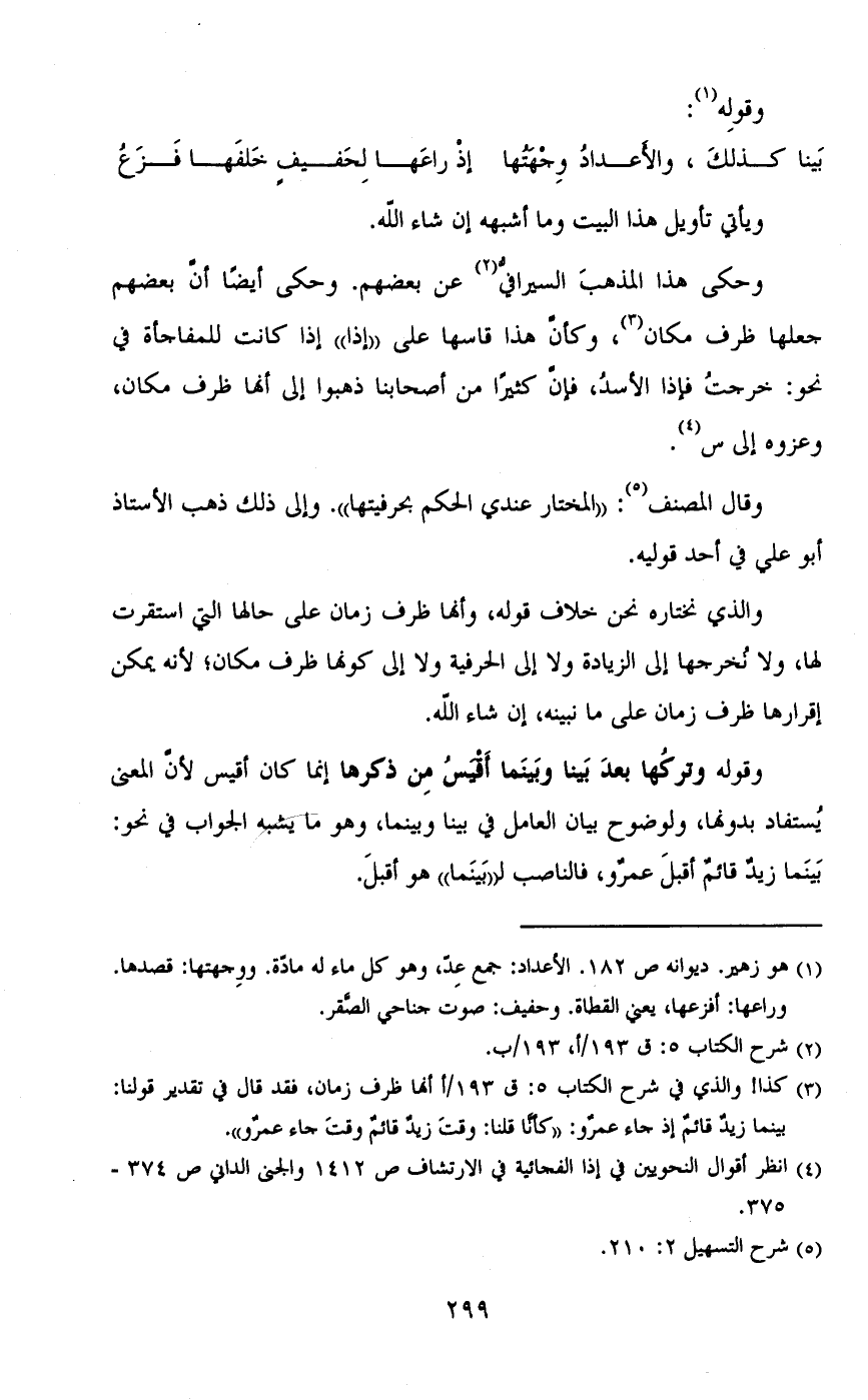 وحكى هذا المذهب السيرافي عن بعضهم. وحكى أيضاً أن بعضهم جعلها ظرف مكان، وكأن هذا قاسها على «إذا» إذا كانت للمفاجأة في نحو: خرجت فإذا الأسد، فإن كثيراً من أصحابنا ذهبوا إلى أنها ظرف مكان, وعزوه إلى س.