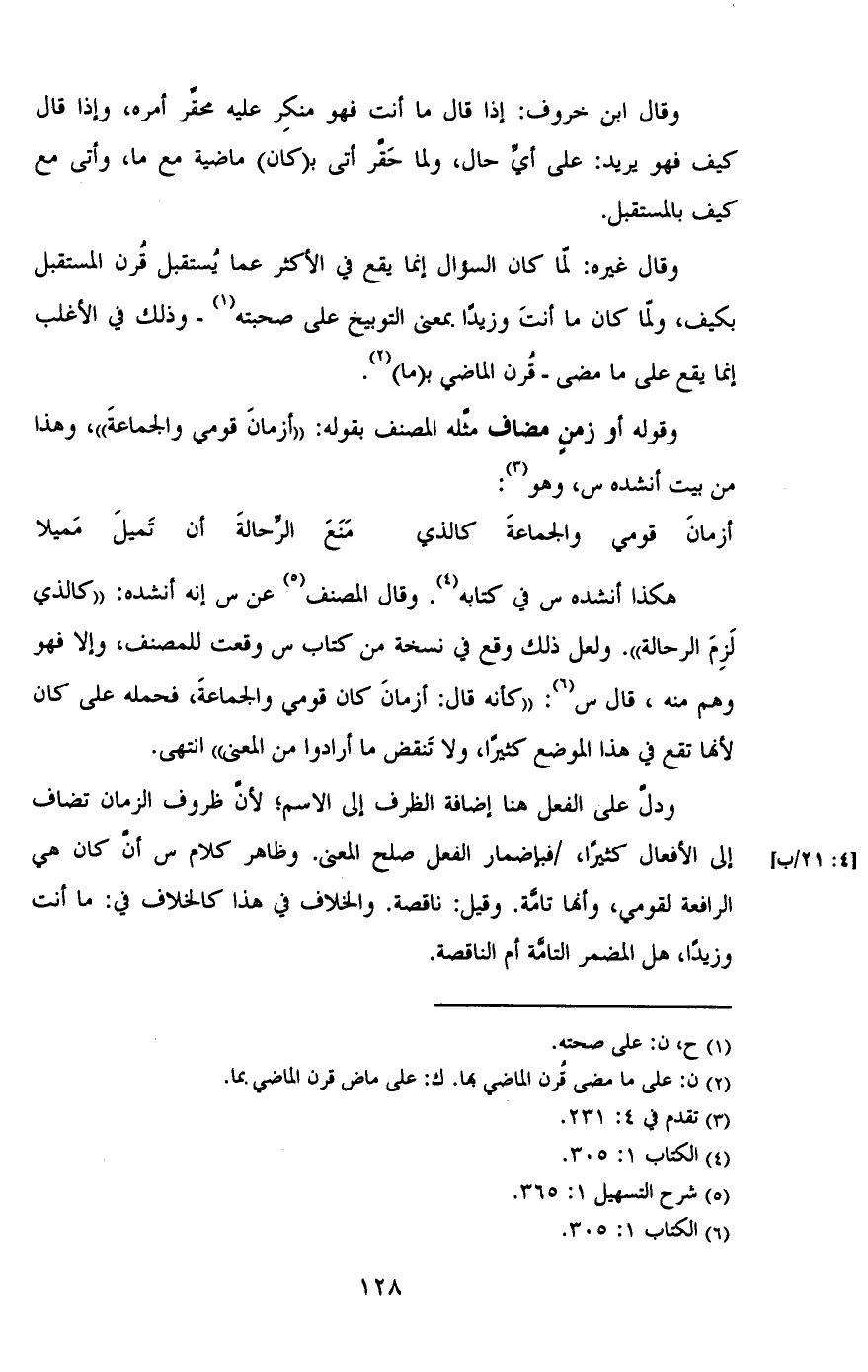هكذا أنشده س في كتابه. وقال المصنف عن س إنه أنشده: ((كالذي لزم الرحالة)). ولعل ذلك وقع في نسخة من كتاب س وقعت للمصنف، وإلا فهو وهم منه، قال س: ((كأنه قال: أزمان كان قومي والجماعةً، فحمله على كان لأنها تقع في هذا الموضع كثيرا، ولا تنقض ما أرادوا من المعنى)) انتهى.