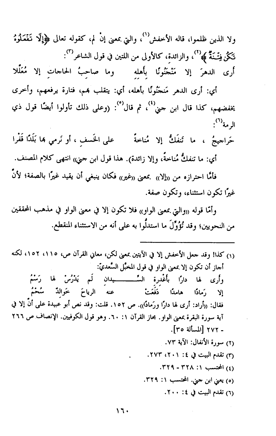 وأما قوله "والتي بمعنى الواو" فلا تكون إلا في معنى الواو في مذهب المحققين من النحويين؛ وقد تُؤول ما استدلوا به على أنه من الاستثناء المنقطع.