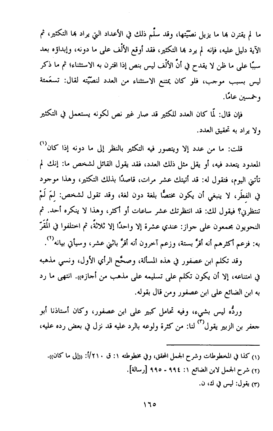 فإن قال: لما كان العدد للكثير قد صار غير نص لكونه يستعمل في التكثير ولا يراد به تحقيق العدد.