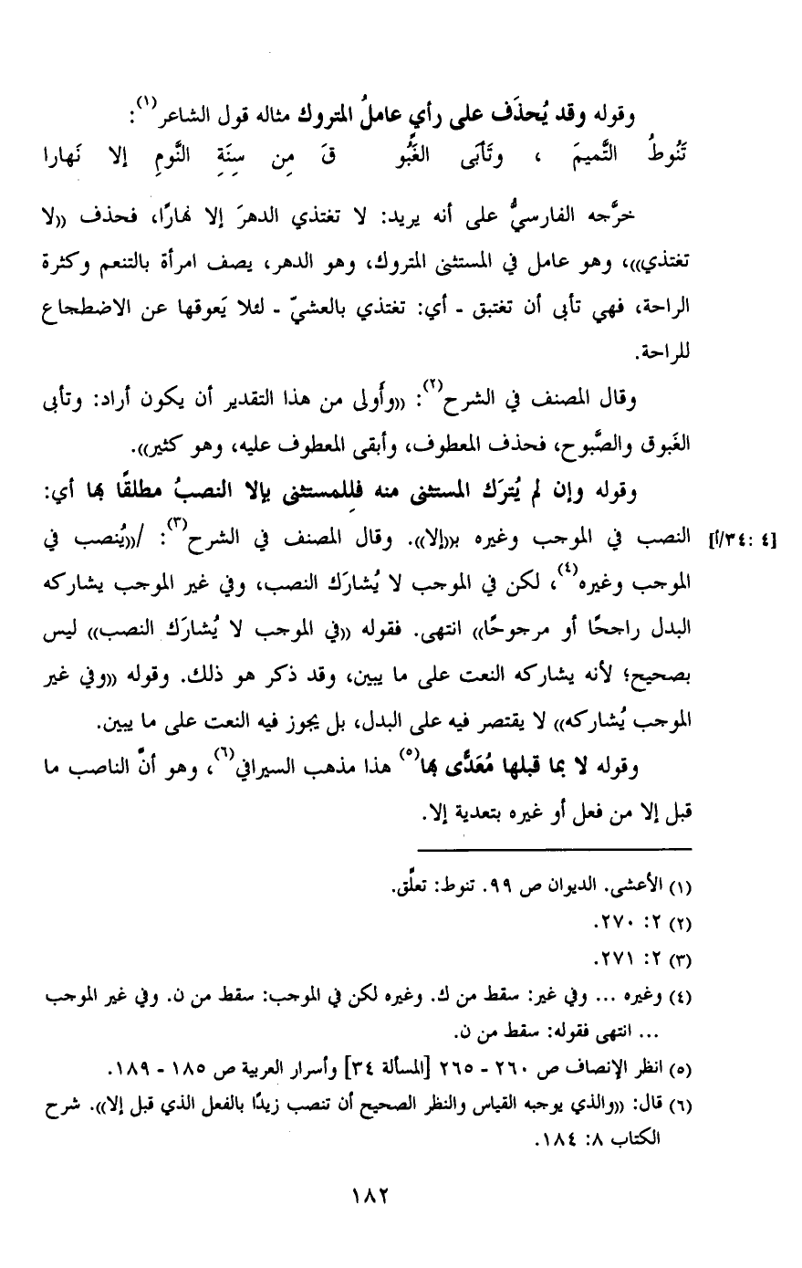 وقوله وإن لم يُترك المستثنى منه فللمستثنى بإلا النصب مطلقًا بها أي: النصب في الموجب وغيره بـ"إلا". وقال المصنف في الشرح: / [4: 34/ أ] "يُنصب في الموجب وغيره، لكن في الموجب لا يُشارك النصب، وفي غير الموجب يشاركه بصحيح؛ لأنه يشاركه النعت على ما يبين، وقد ذكر هو ذلك. وقوله "وفي غير الموجب يُشاركه" لا يقتصر فيه على البدل، بل يجوز فيه النعت على ما يبين.