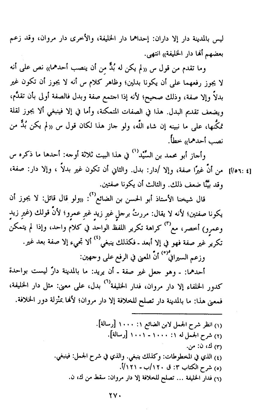 أحدهما: وهو جعل غير صفة - أن يريد: ما بالمدينة ليست دار بواحدة كدور الخلفاء إلا دار مروان, فدار الخليفة بدل, على معنى: مثل دار الخليفة, فمعنى هذا: ما بالمدينة دار تصلح للخلافة إلا دار مروان؛ لأنها بمنزلة دور الخلافة.