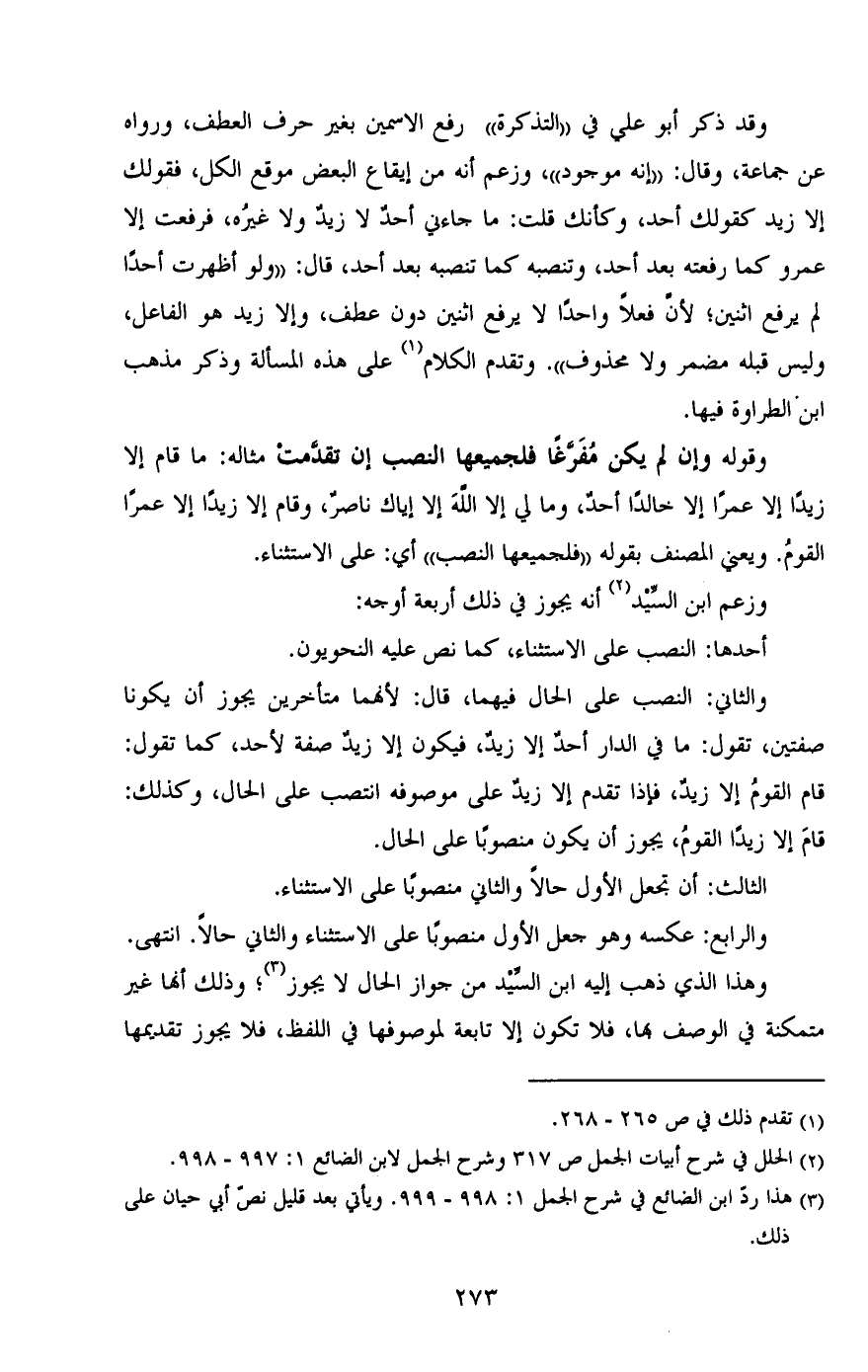 والرابع: عكسه وهو جعل الأول منصوبًا على الاستثناء والثاني حالًا, انتهي.