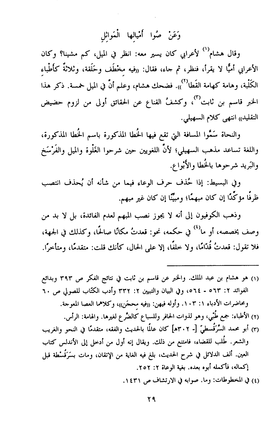 والنحاة سموا المسافة التي تقع فيها الخطأ المذكورة باسم الخطأ المذكورة, واللغة تساعد مذهب السهيلي؛ لأن اللغويين حين شرحوا الغلوة والميل والفرسخ والبريد شرحوها بالخطأ والأنواع.
