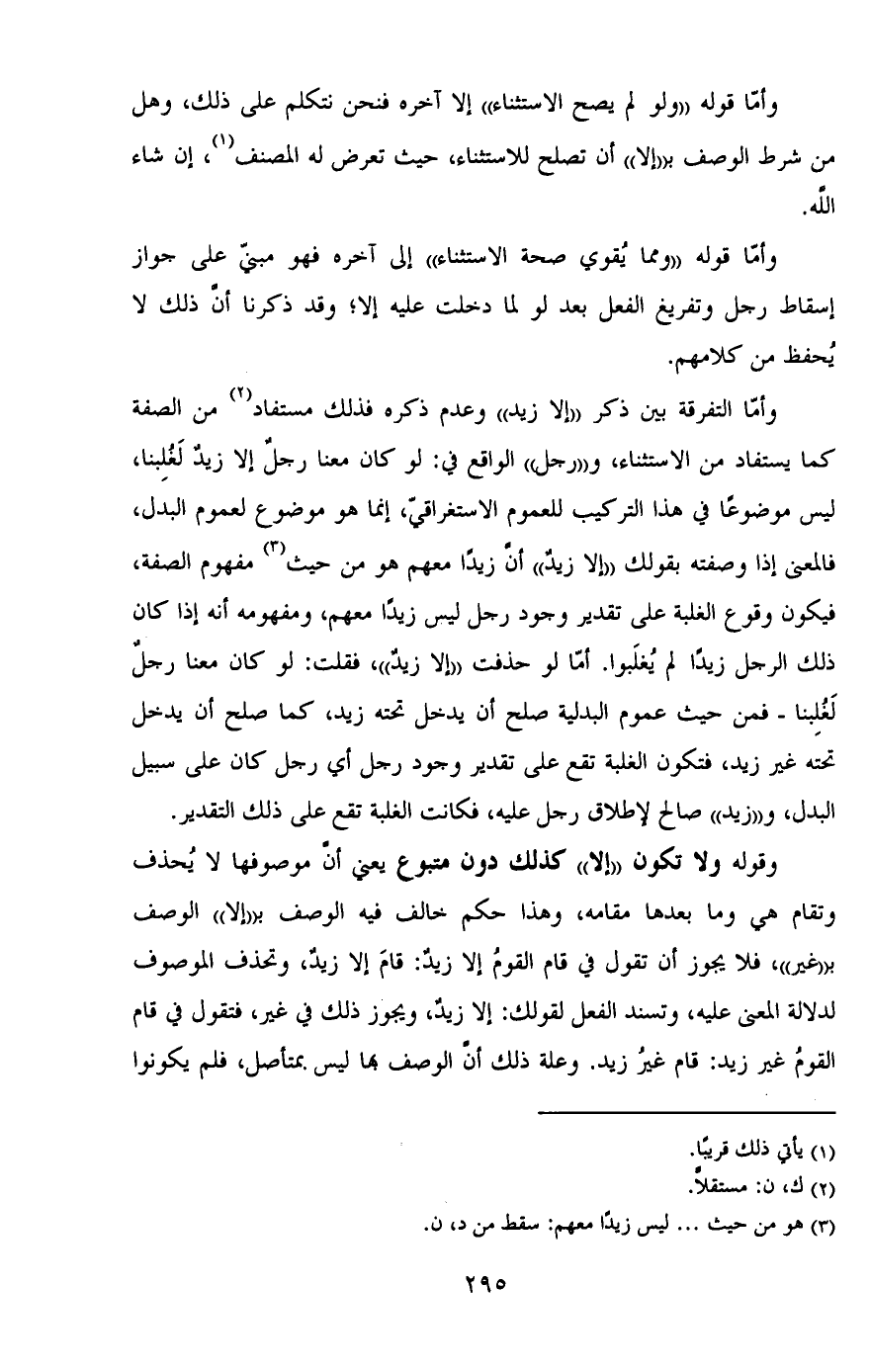 وأما قوله "ولو لم يصح الاستثناء" إلا آخره فنحن نتكلم على ذلك، وهل من شرط الوصف بـ "إلا" أن تصلح للاستثناء، حيث تعرض له المصنف، إن شاء الله.