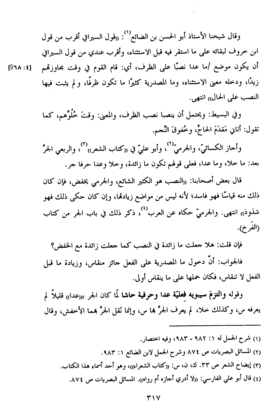 وقوله والتزم سيبويه فعلية عدا وحرفية حاشا لما كان الجر بـ"عدا" قليلًا لم يعرفه س، وكذلك خلا، لم يعرف الجر بها س، وإنما نقل الجر بهما الأخفش، وقال