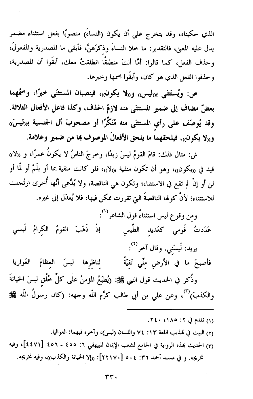 ومن وقوع ليس استثناء قول الشاعر: