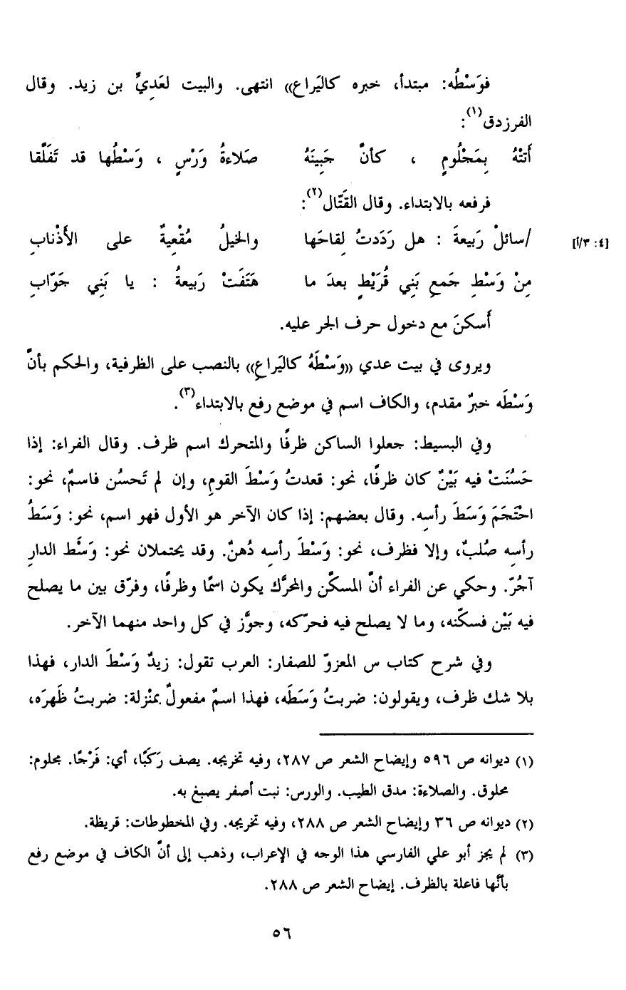وفي شرح كتاب س المعزو للصفار: العرب تقول: زيدٌ وسط الدار، فهذا بلا شك ظرف، ويقولون: ضربت وسطه، فهذا اسمٌ مفعولٌ بمنزلة: ضربت ظهره،