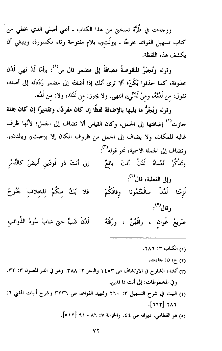 ووجدت في طرة نسختي من هذا الكتاب - أعني أصلي الذي بخطي من كتاب تسهيل الفوائد مخرجًا- "وولت"، بلام مفتوحة وتاء مكسورة، وينبغي أن يكشف هذه اللفظة.