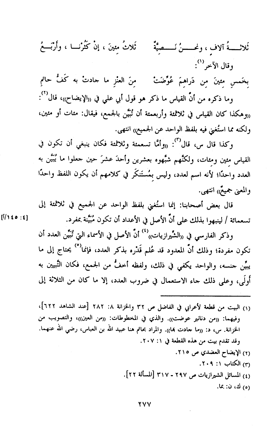 وذكر الفارسى فى "الشيرازيات" أن الاصل فى الاسماء التى تبين العدد ان