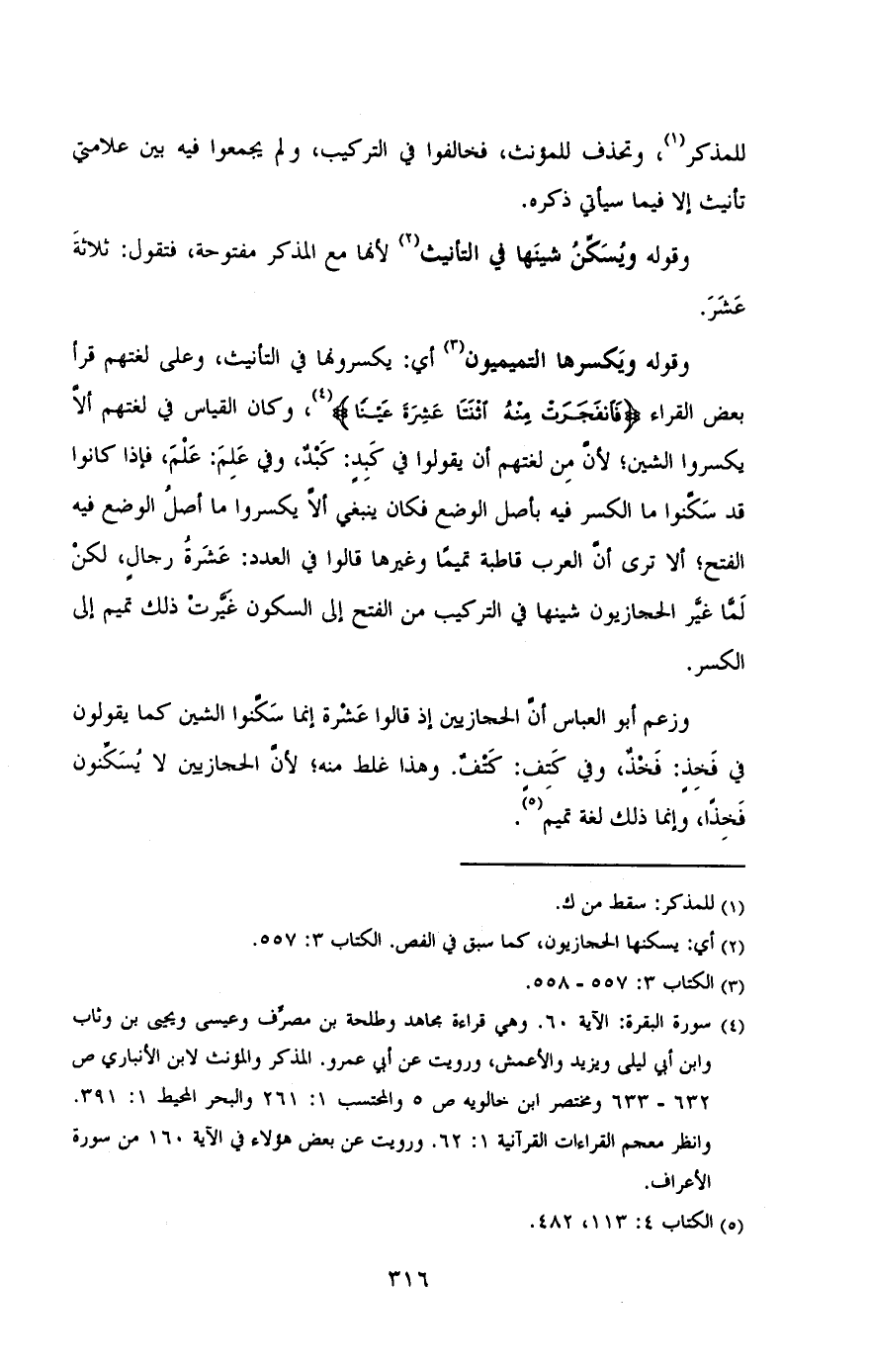 وزعم أبو العباس أن الحجازيون إذ قالوا عشرة إنما سكنوا الشين كما يقولون