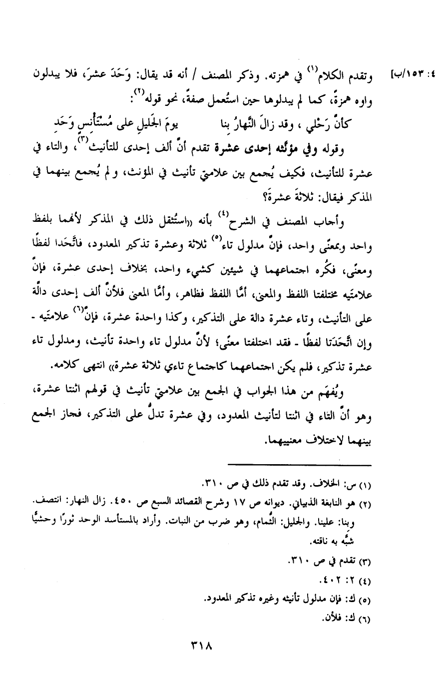 عشرة تذكير، فلم يكن اجتماعهما كاجتماع تاءي ثلاثة عشرة» انتهى كلامه.