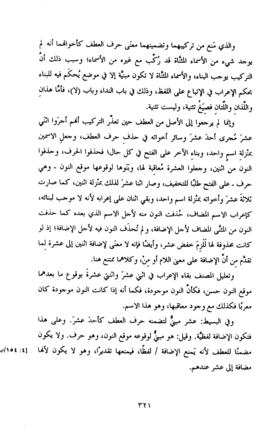 وإنما لم يرجعوا إلى الأصل من العطف حين تعذر التركيب أنهم أجروا اثنى