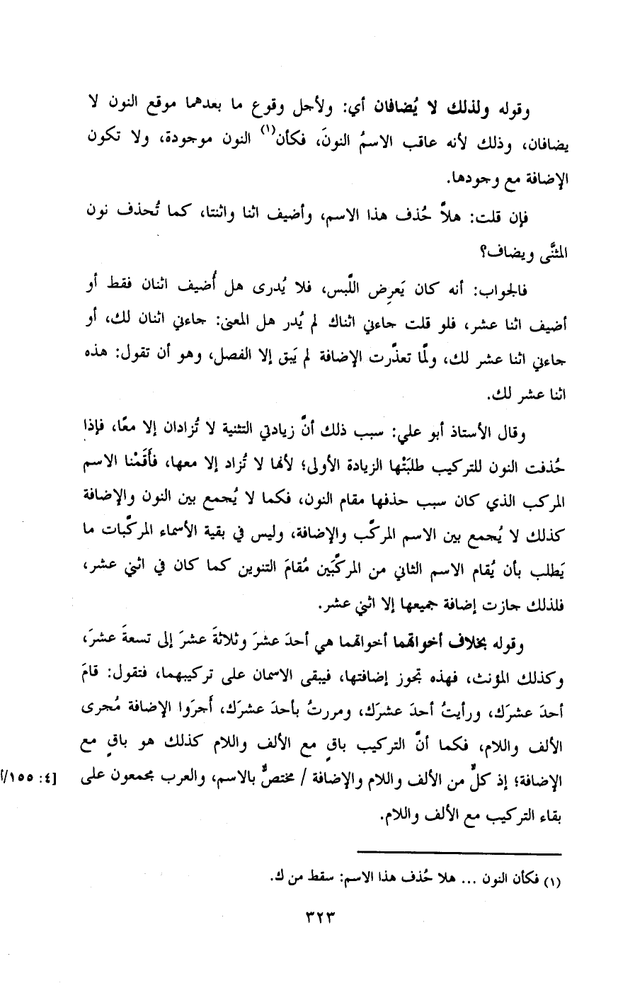 وقال الأستاذ أبو على: سبب ذلك أن زيادتي التثنية لا تزدادان إلا معا، فإذا