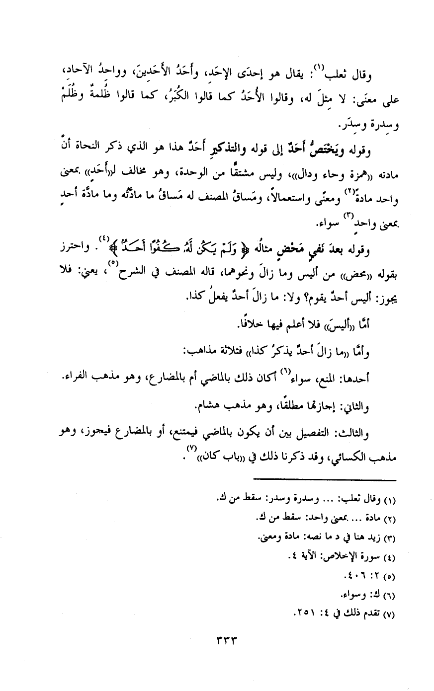 وقوله ويختص احد إلي قوله والتذكير احد هذا هو الذي ذكر النحاة أن