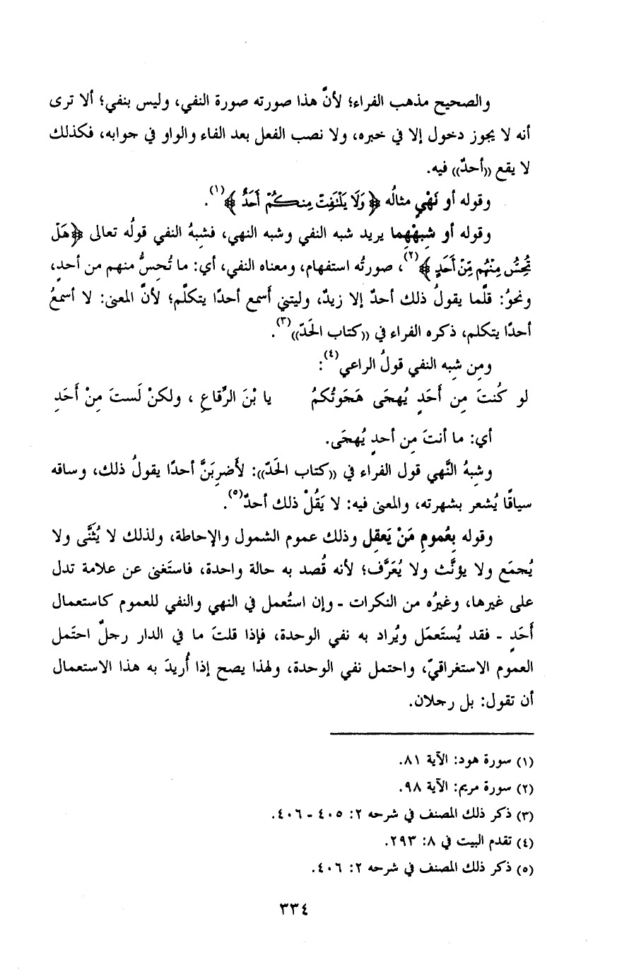 دخول إلا في خبره ,ولانصب الفعل بعد الفاء والواو في جوابه ,فكذلك لا يقع «احد» فيه.