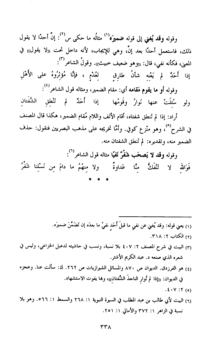 وقوله وقد لا يصحب شفر نفيا مثاله قول الشاعر:
