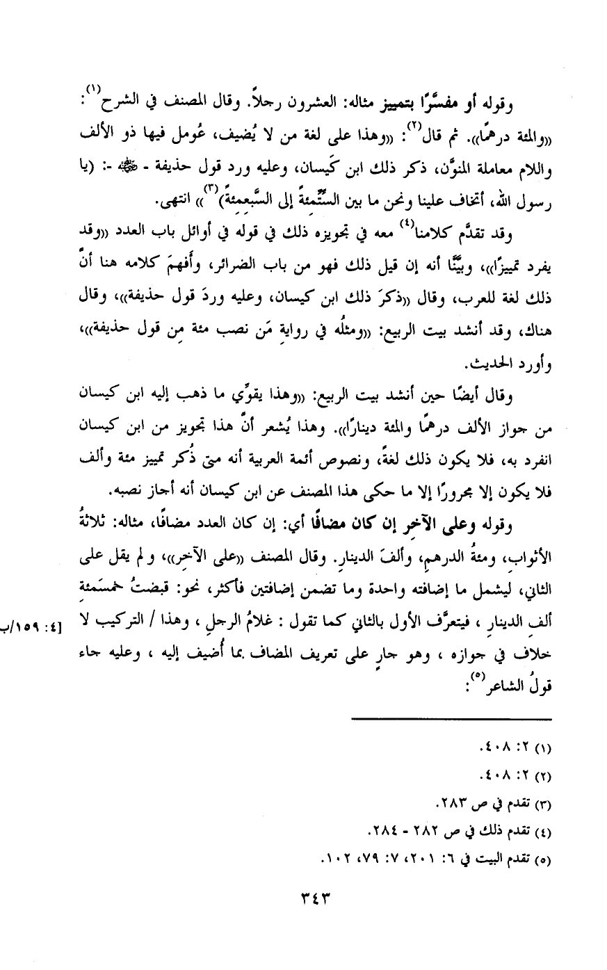 وقال أيضا حين انشد بيت الربيع «وهذا يقوي ما ذهب إليه ابن كيسان من جواز الألف درهما والمئة دينارا».