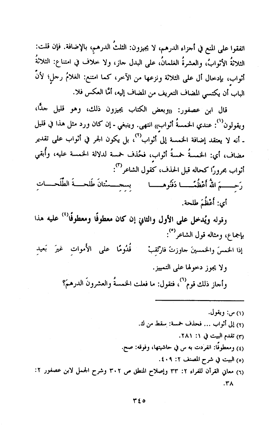 وقال ابن عصفور: «وبعض الكتاب يجيزون ذلك , وهو قليل جدا ويقولون: عندي الخمسهه أثواب» انتهي.