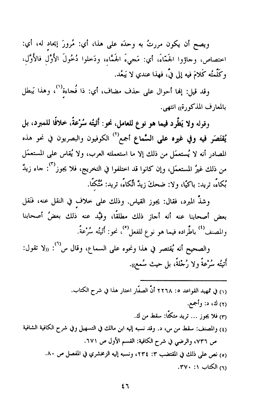 والصحيح انه يقتصر في هذا ونحوه علي السماع , وقال س: «لا تقول: أتيته سرعة ولا رجلة , بل حيث سمع».