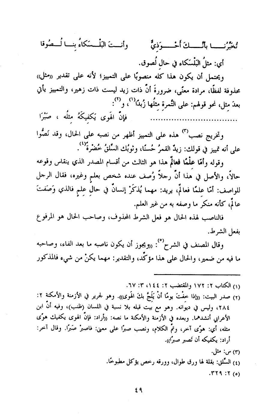 ويحتمل ان يكون هذا كله منصوبا علي التمييز؛ لأنه علي تقدير «مثل» محذوفة لفظا , مراده معني ضرورة ذلك أن ذات زيد ليست ذات زهير , والتمييز يأتي بعد مثل , نحو قولهم: علي التمرة مثلها زبدا , وفان الهوى يكفيكه مثله , صبرا