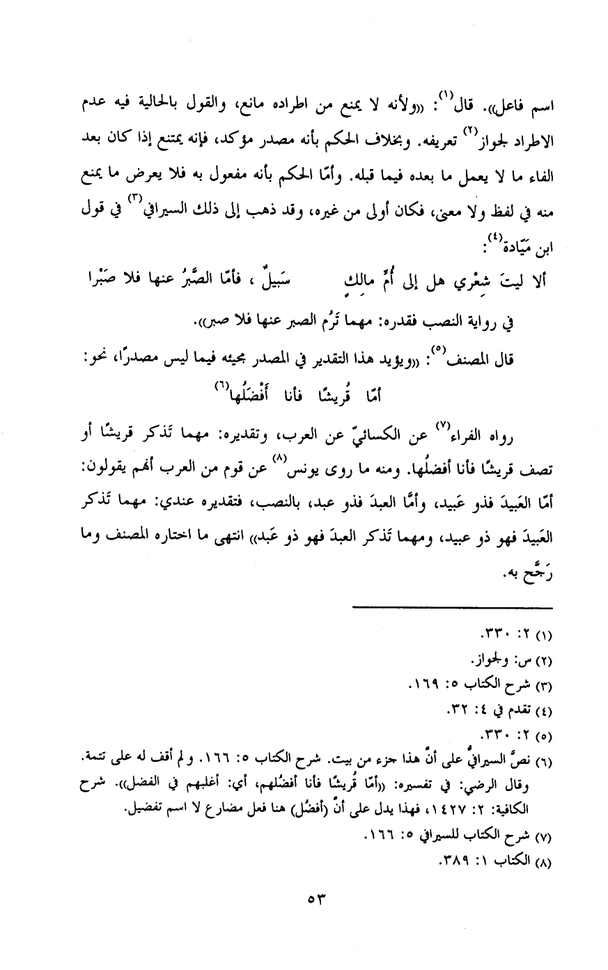 رواه الفراء عن الكسائي عن العرب , وتقديره: مهما تذكر قريشا أو تصف قريشا فانا أفضلها. ومنه ما روي يونس عن القوم من العرب أنهم يقولون: أما العبيد فهو ذو عبيد , ومهما تذكر العبد فهو ذو عبد» انتهي ما اختاره المصنف وما رجح به.