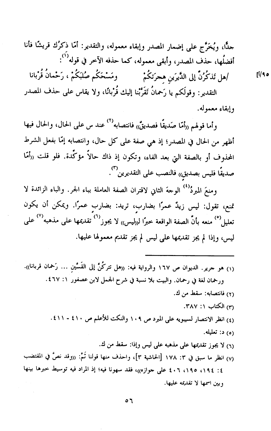 ومنع المبرد الوجه الثاني لاقتران الصفة العاملة بباء الجر. والباء الزائدة لا تمنع , تقول: ليس زيد عمرا بضارب , تريد: بضارب عمرا. ويمكن أن يكون تعليل منعه بان الصفة الواقعة خبرا ل «ليس» لا يجوز تقديمهما علي مذهبه علي ليس وإذا لم يجر تقديمها علي ليس لم يجر تقديم معمولها عليها.
