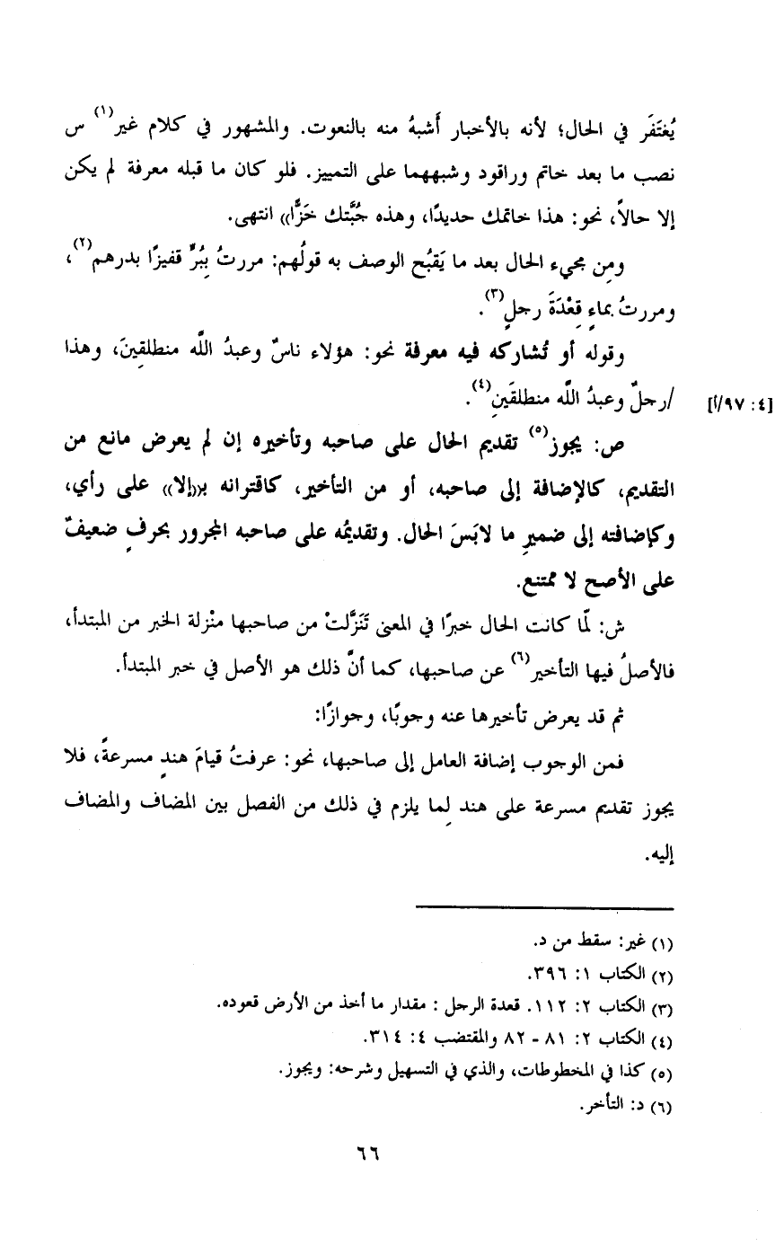 ش: لما كانت الحال خبرا في المعني تنزلت من صاحبها منزلة الخبر من المبتدأ، فالأصل فيها التأخير عن صاحبها، كما أن ذلك هو الأصل في خبر المبتدأ.
