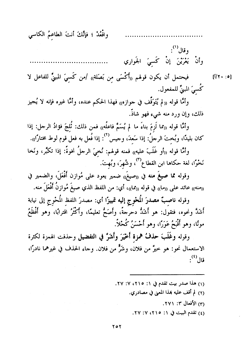 فيحتمل أن يكون قولهم «أَكْسَى من بَصَلة» /من كَسِيَ المبنيَّ للفاعل لا كُسِيَ المبنيِّ للمفعول.