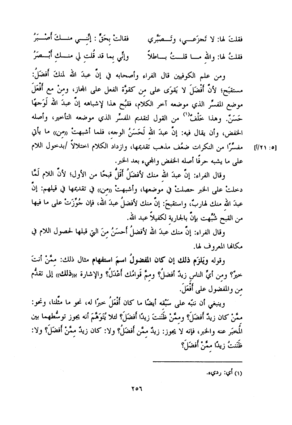 وقال الفراء: إنَّ منك عبدَ الله لأفضلُ أَحسَنُ مِنَ التي قبلها لحصول اللام في مكانها المعروف لها.