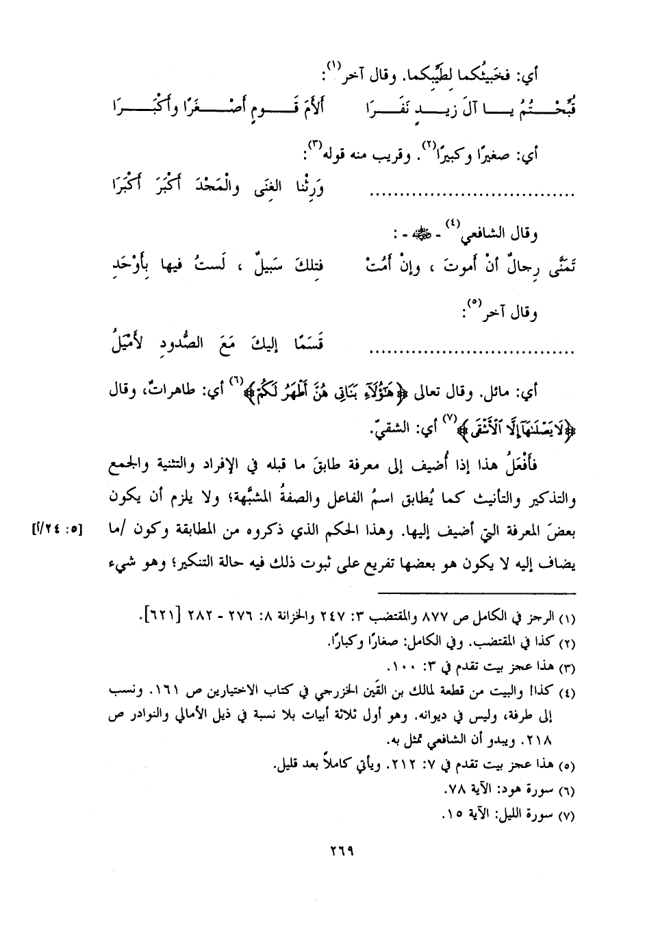أي: مائل. وقال تعالى {هولاء بنلتى هن أطهر لكم} أي: طاهراتُ، وقال {لا يصلها إلا الأشقى} أي: الشقيّ.
