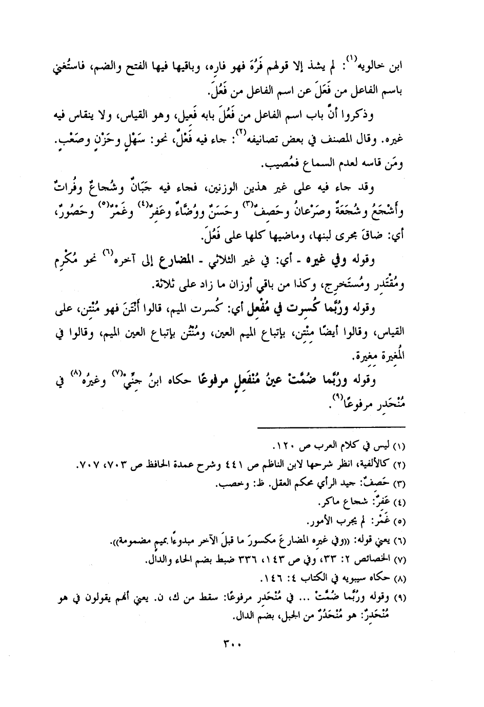 وقوله ورُبَّما ضُمَّتْ عينُ مُنْفَعِلٍ مرفوعًا حكاه ابنُ جِنِّيْ وغيرُه في مُنْحَدِر مرفوعًا.