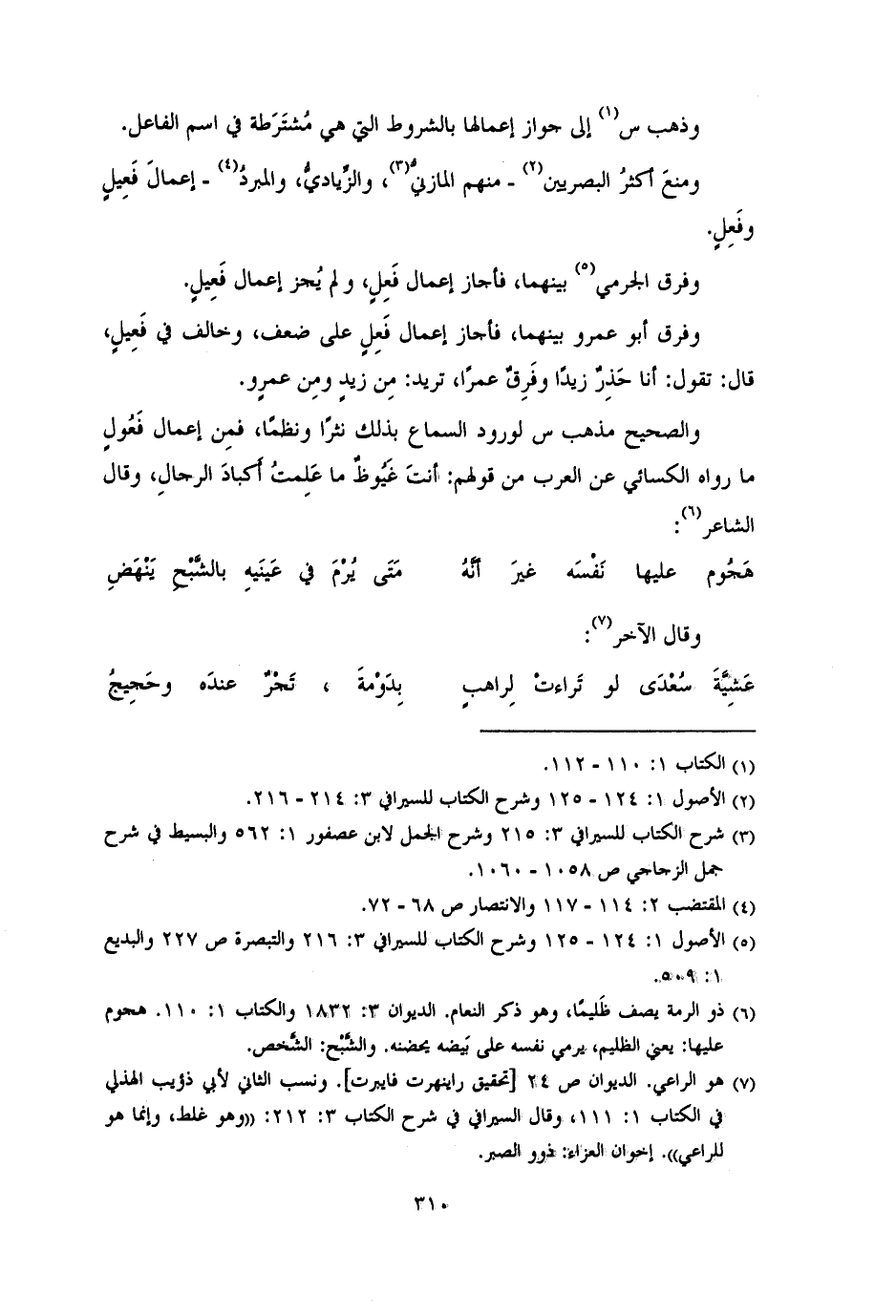 وذهب س إلى جواز إعمالها بالشروط التي هي مُشتَرَطة في اسم الفاعل. ومنعَ أكثرُ البصريين ــــ منهم المازنيُّ، والزَّياديُّ، والمبردُ ــــ إعمالَ فَعِيلٍ وفَعِلٍ.
