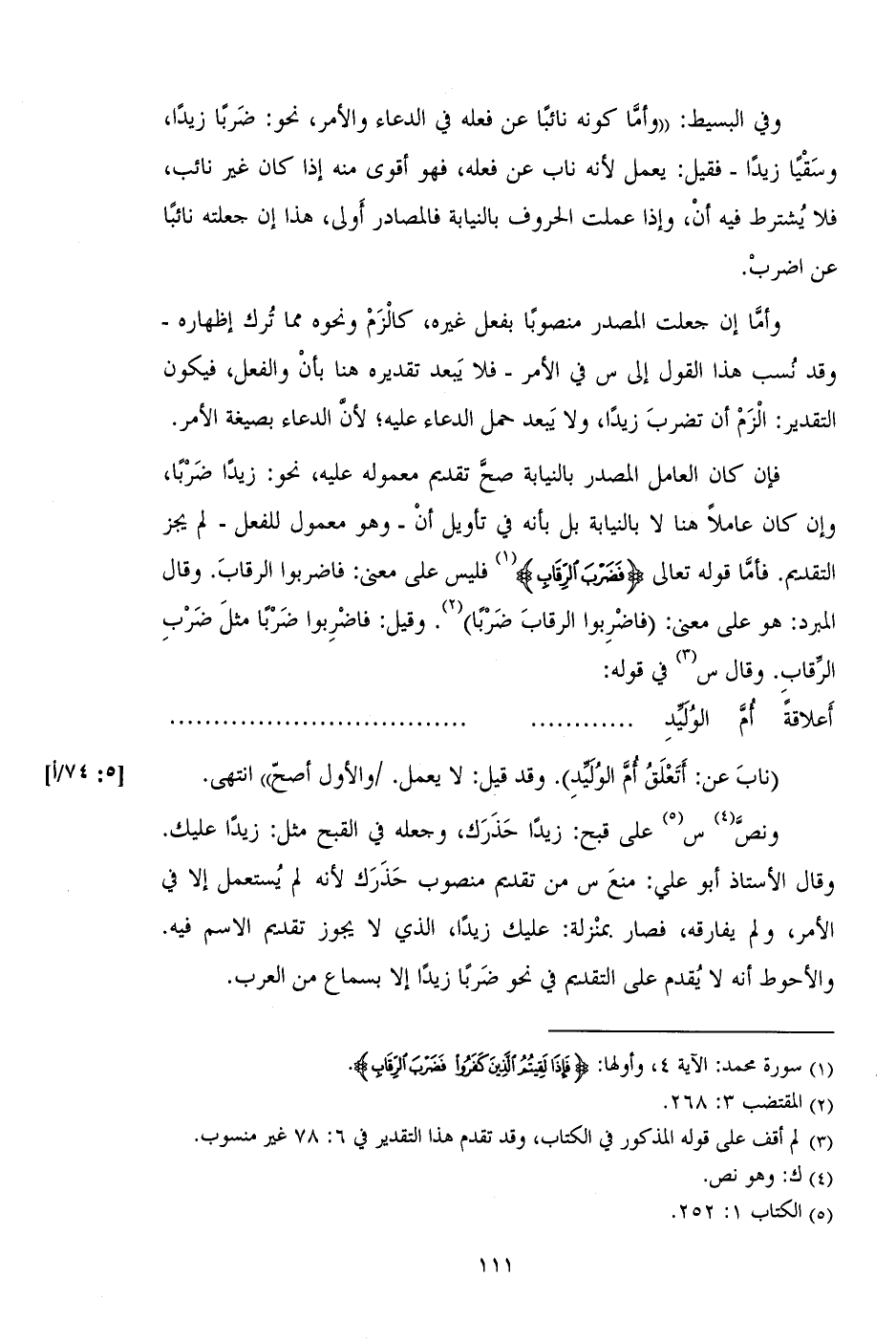 فإن كان العامل المصدر بالنسابة صح تقديم معموله عليه، نحو: زيداً ضرباً، وإن كان عاملاً هنا لا بالنيابة بل بأنه في تأويل أن - وهو معمول للفعل - لم يجز التقديم. فأما قوله تعالى (فَضَرْبَ الرِّقَابِ) فليس على معنى: فاضربوا الرقاب. وقال المبرد: هو على معنى: (فاضربوا الرقاب ضرباً). وقيل: فاضربوا ضربا مثل ضرب الرقاب. وقال س في قوله: