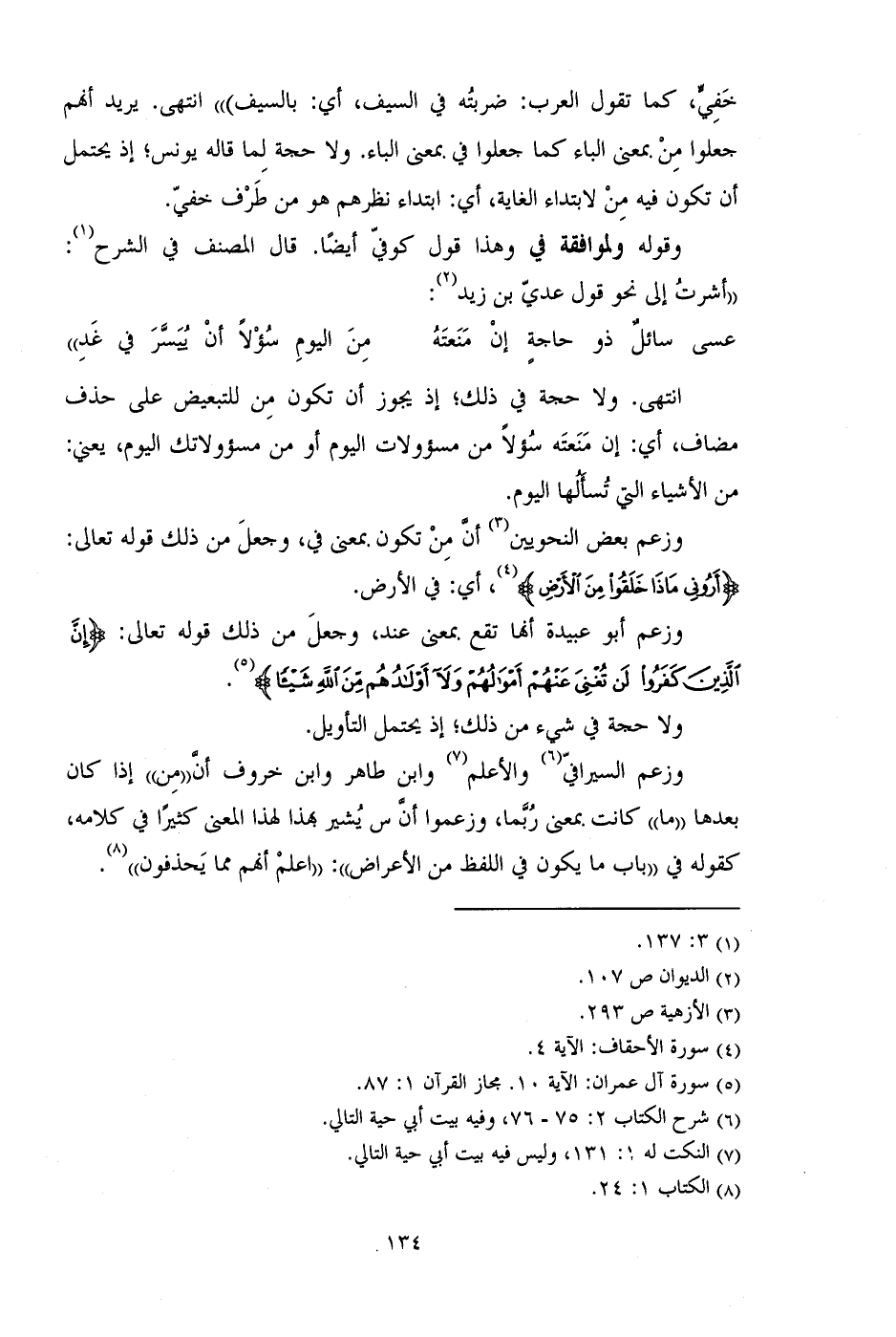 وزعم بعض النحويين أن من تكون بمعنى في، وجعل من ذلك قوله تعالى: (أَرُونِي مَاذَا خَلَقُوا مِنَ الْأَرْضِ)، أي: في الأرض.