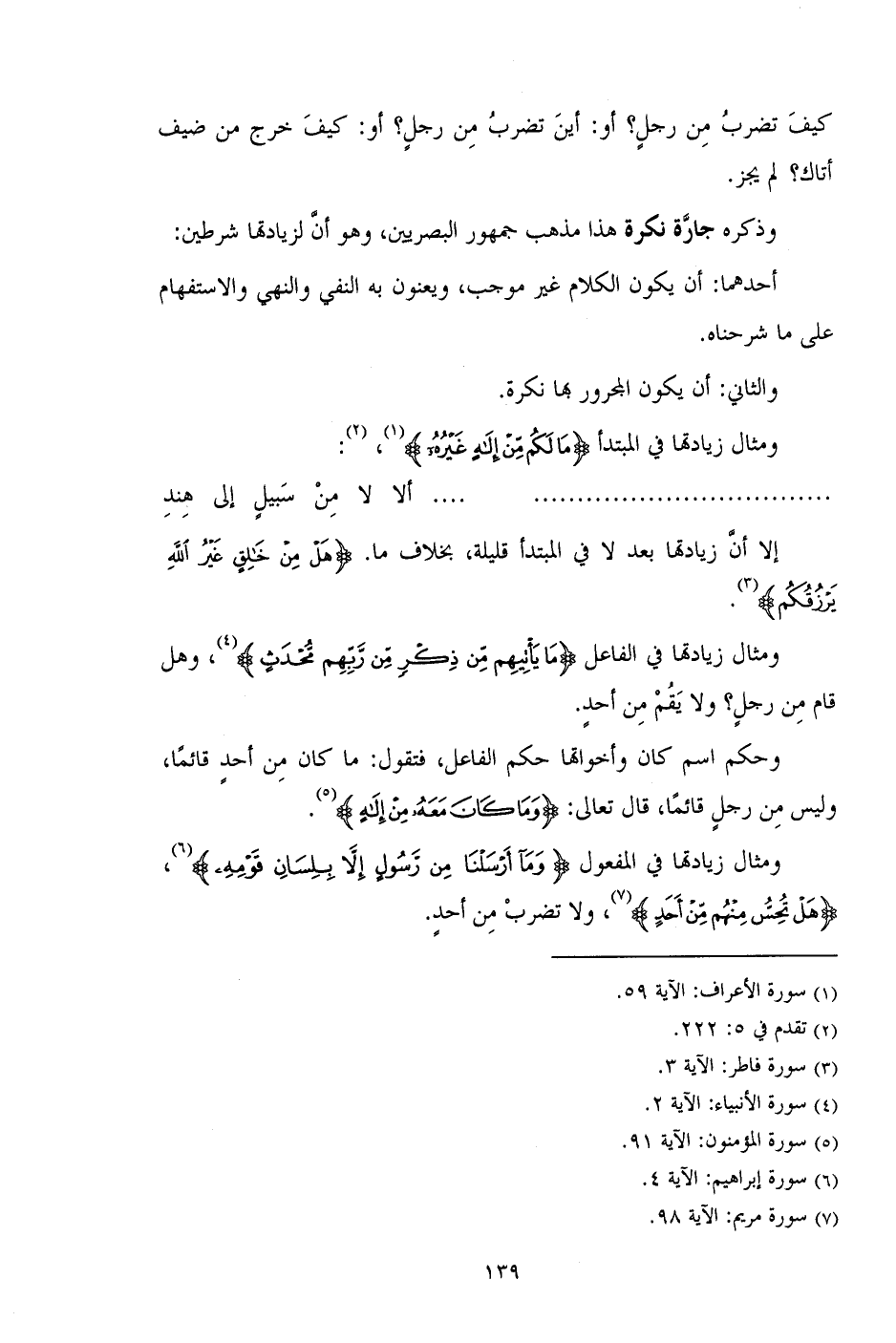 ومثال زيادتها في المبتدأ (مَا لَكُمْ مِنْ إِلَهٍ غَيْرُهُ)،:
