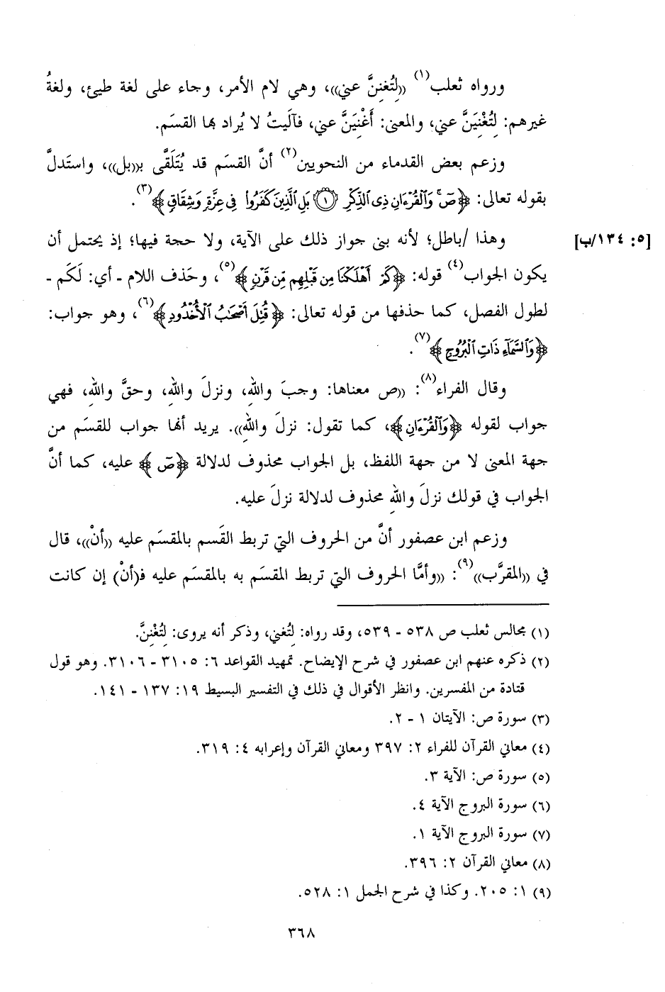 وقال الفراء: ((ص معناها: وجب والله، ونزل والله، وحق والله، فهي جواب لقوله (وَالْقُرْآنِ)، كما تقول: نزل والله)). يريد أنها جواب للقسم من جهة المعنى لا من جهة اللفظ، بل الجواب محذوف لدلالة (ص) عليه، كما أن الجواب في قولك نزل والله محذوف لدلالة نزل عليه.