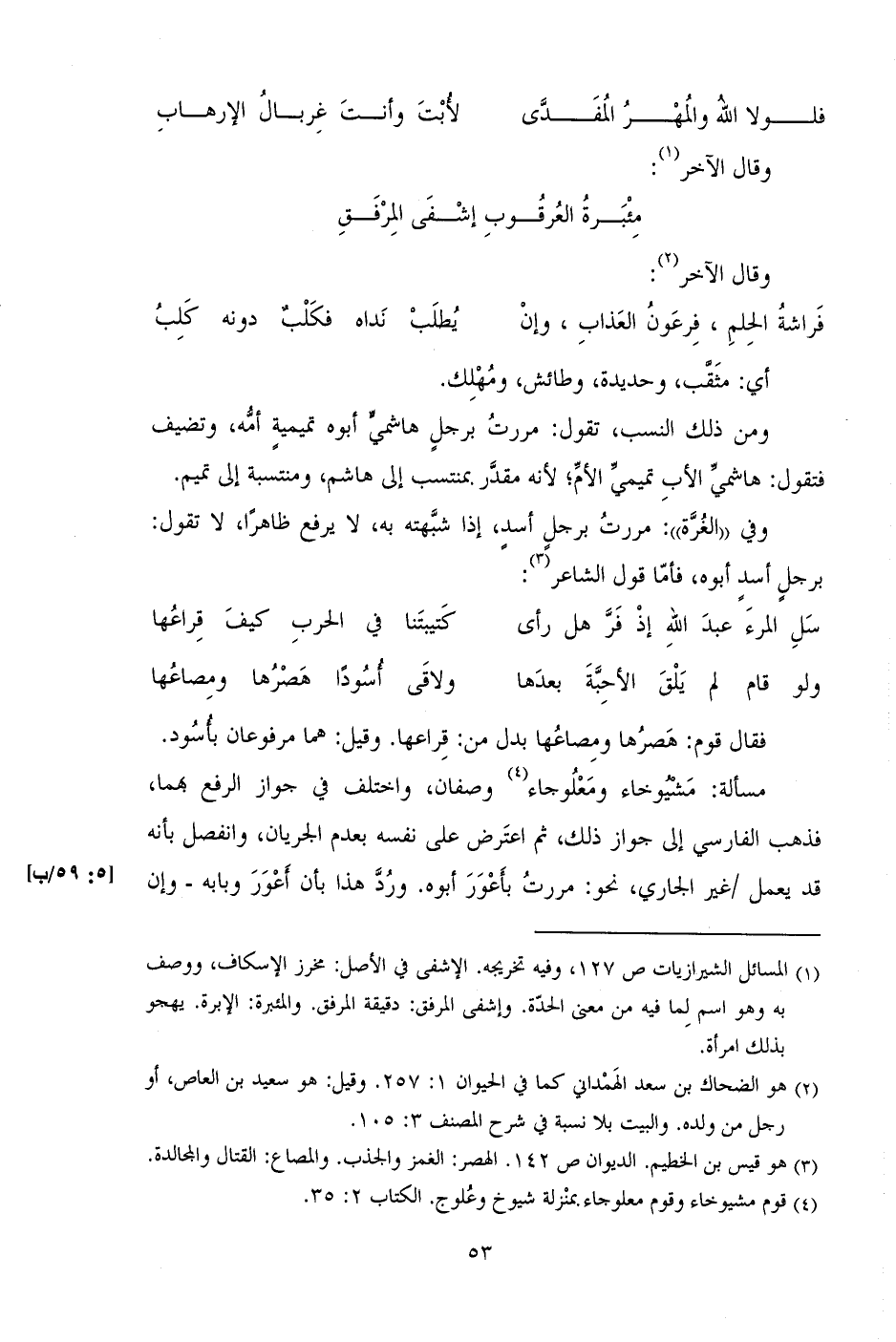 ومن ذلك النسب، تقول: مررت برجل هاشمي أبوه تميمية أمه، وتضيف فتقول: هاشمي الأب تميمي الأم؛ لأنه مقدر بمنتسب إلى هاشم، ومنتسبة إلى تميم.