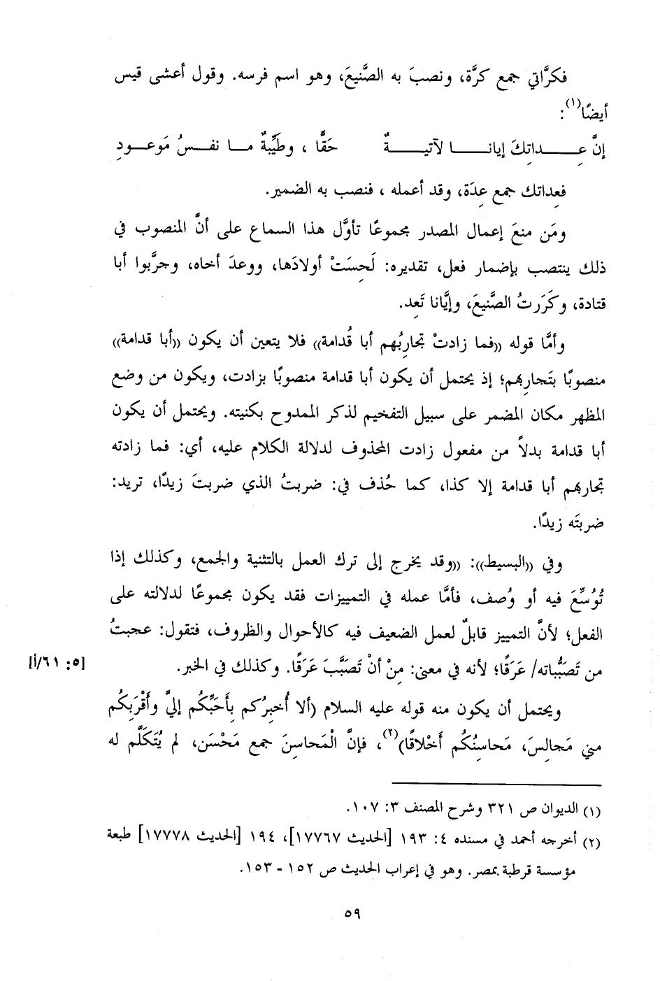 فكراتي جمع كرة، ونصب به الصنيع، وهو اسم فرسه. وقول أعشى قيس أيضاً: