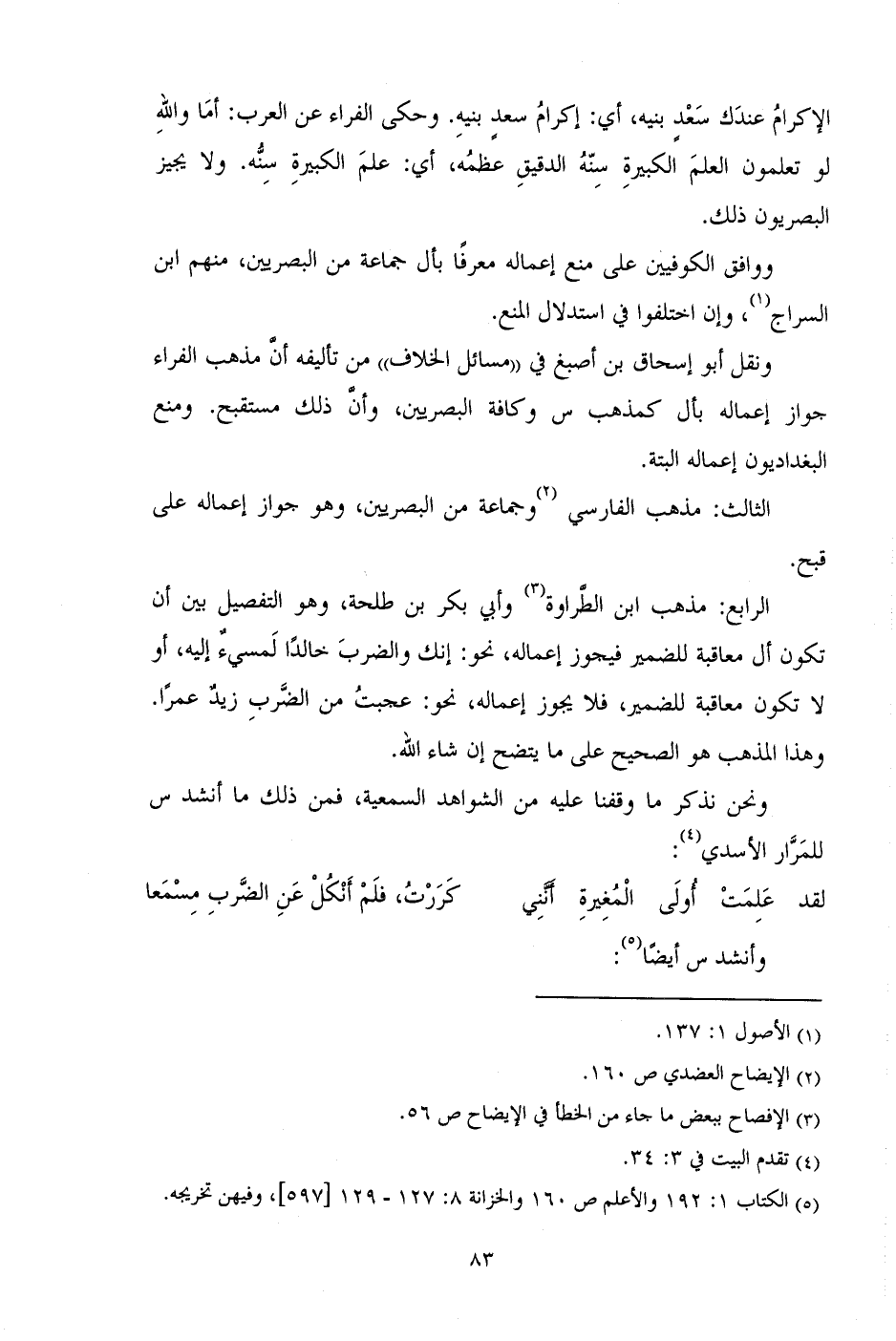 ونحن نذكر ما وقفنا عليه من الشواهد السمعية، فمن ذلك ما أنشد س للمرار الأسدي: